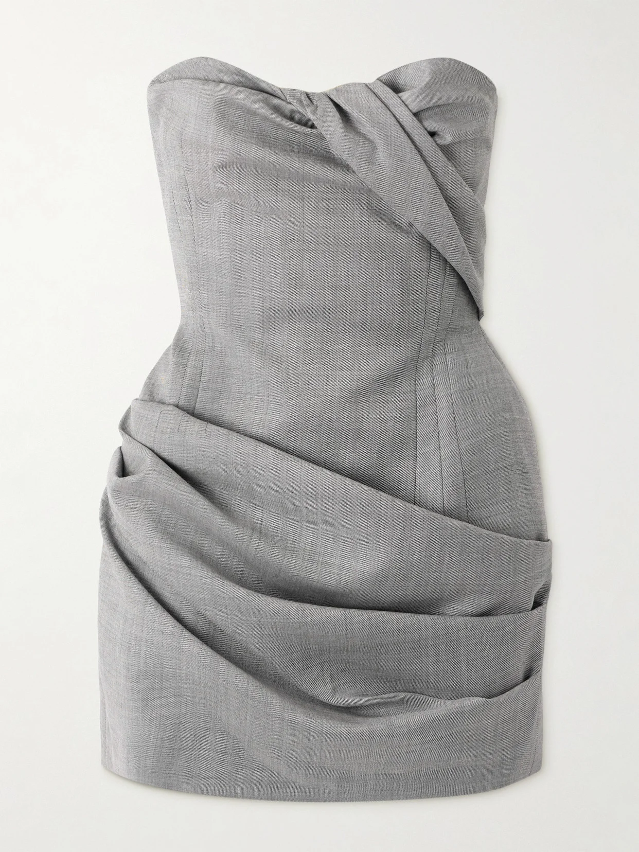 Strapless Draped Grain De Poudre Wool-blend Mini Dress