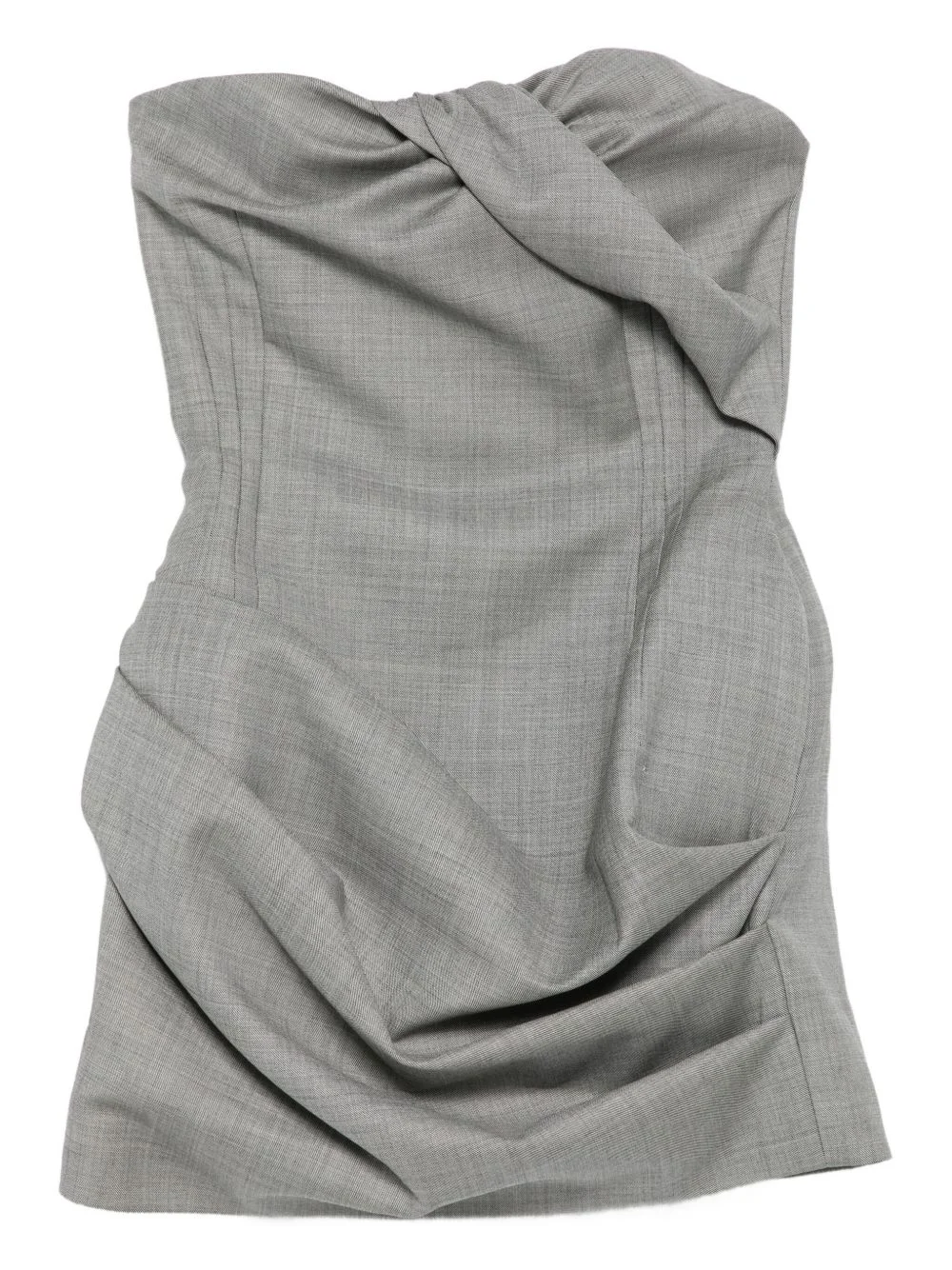 twisted draped dress Highlights - Grey - Wool blend - Strapless - Draped detail - Twisted detail - Concealed zip fastening Imported Composition Wool 98%, Elastane 2% SIZE & FIT Model measurements Height 5 ft 9 in(1.75 m) Bust/Chest 32.67 in(83 cm) Hips 36.22 in(92 cm) Waist 24.8 in(63 cm) Washing instructions Read Manufacturer Guidelines