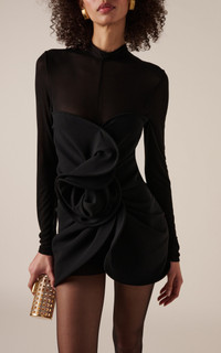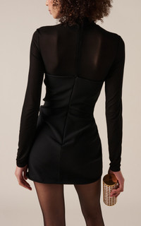 Unabashedly feminine and sexy in equal measure, the Polish designer’s party pieces sit in a league of their own—and continue to evolve season after season. This gathered mini dress features a sheer mesh panel along its neckline balanced with a curved, rosette-like bodice crafted from wool. PRODUCT DETAILS - Fall/Winter '24 - Concealed zip fastening along back - Composition: 92% cupro, 8% elastane; Combo: 96% wool, 4% elastane - Dry clean - Imported SIZE & FIT - Our model is wearing a size FR 34 - Model is 5'11" with a 31.5" bust, 23" waist, and 34.5" hip - Designed for a slim fit