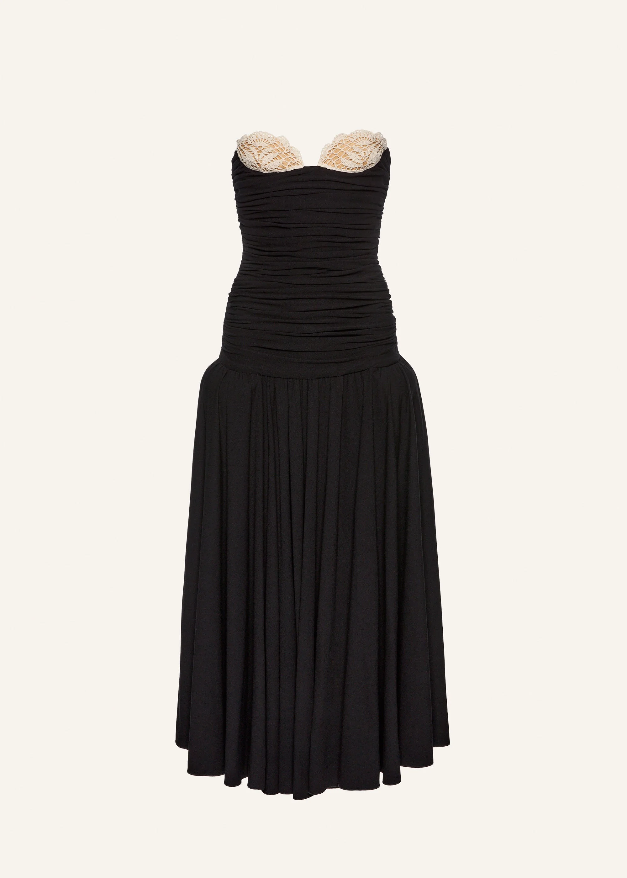 A maxi dress with a statement drop-waist and Magda Butrym signature handmade lace crochet detailing on its strapless bustier cups, made from viscose jersey. Details ID: 341725 Shell 95% Viscose 5% Elastane Sizing This piece fits true to size. We recommend you get your regular size. Model is 180 cm and is wearing a size 34.
