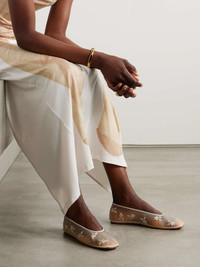 EDITORS'NOTES Magda Butrym's ballet flats are made from mesh and have the same square toe as classic pointe styles. They're intricately embroidered with flowers (a label signature) and have a low-cut vamp outlined with smooth leather trims. SIZE & FIT - Fits true to size, take your normal size - Italian sizing DETAILS & CARE - Slight heel - Cream mesh and leather (Calf) - Slip on