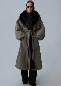 A winter-ready statement piece, this long coat is crafted from cotton and fully lined in faux fur. Designed with voluminous sleeves that gather at the cuff, it features a hood and waist-cinching belt in place of traditional closure. Front pockets complete this elevated, cocoon-like silhouette. Details ID: 226925 Shell 100% Cotton Lining 100% Silk Sizing This piece fits true to size. We recommend you get your regular size. Model is 177 cm and is wearing a size 34.
