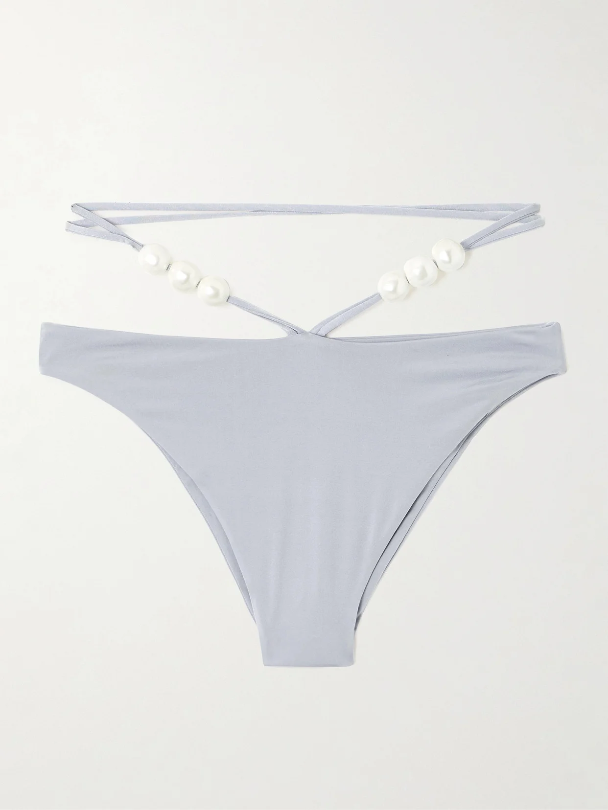 Magda Butrym's swimwear is every bit as glamorous as its ready-to-wear. These bikini briefs are cut from smooth stretch fabric and have slender straps strung with lustrous faux pearls. You'll find the matching top in our edit.
