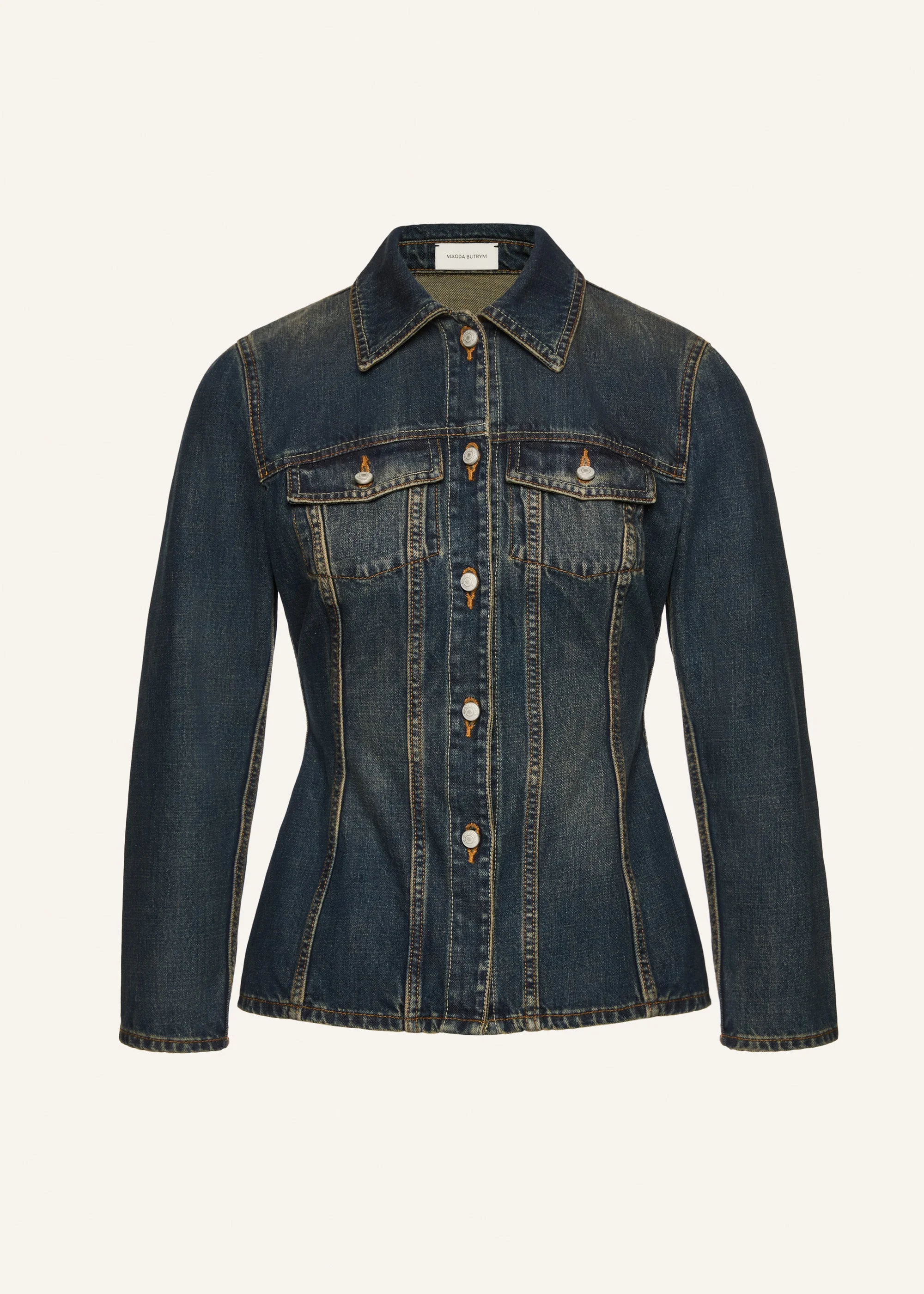 This denim blouse is designed with a contoured, fitted silhouette that accentuates the waist. Featuring a pointed collar, flap chest pockets with metal button detailing, and full-length sleeves, it offers a sleek and flattering shape. The structured seams and paneled construction elevate this everyday staple, making it an effortlessly chic layering piece. Perfect for pairing with matching denim or a casual dress for a polished yet relaxed look. Details ID: 314725 Shell 100% Cotton. Sizing This piece fits true to size. We recommend you get your regular size. Model is 180 cm and is wearing a size 34.