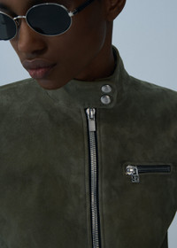 A classic biker jacket fit with a zip up front and fit that hits close to the body, with a snap neck closure. Details ID: 114725 Shell 100% Sheep Leather. Lining 100% Viscose. Sizing This piece fits true to size. We recommend you get your regular size. Model is 180 cm and is wearing a size 34.