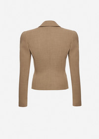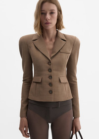 A short, form-fitting blazer cut from wool, designed with structured yet rounded shoulders for a refined shape. Features an open lapel, single-breasted five-button closure, and faux welt pockets at the chest and waist. The unlined construction with piped interior seams adds softness and fluidity while preserving tailored precision. Details ID: 290426 Shell 99% Wool 1% Polyamide. Lining 100% Silk. Sizing This piece has a slim fit. Model is wearing a size 34.