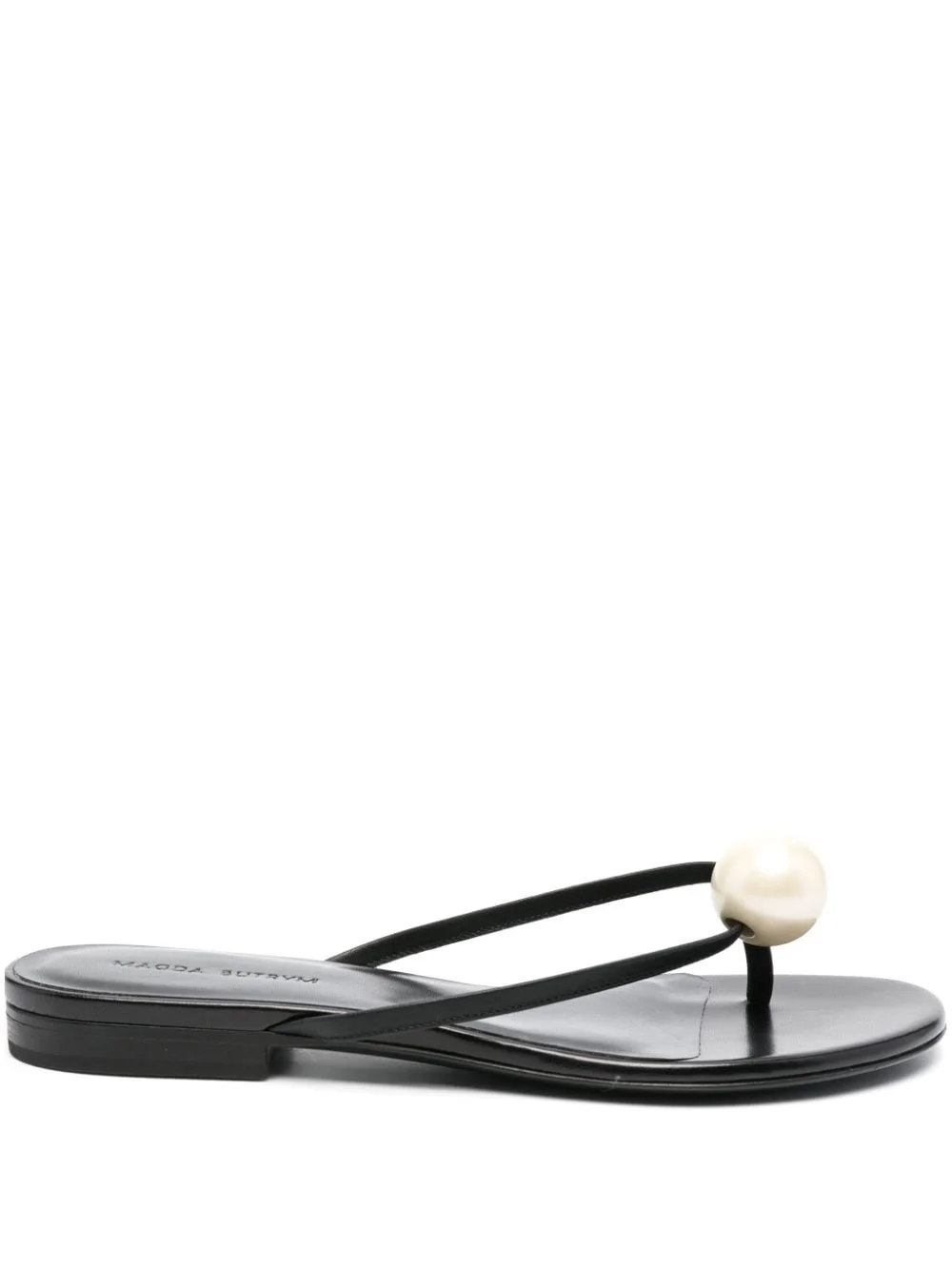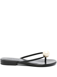 pearl-embellished leather sandals Highlights - Black - Calf leather - Smooth grain - Round open toe - Thong strap - Faux-pearl embellishment - Open back - Branded footbed - Flat leather sole - Slip-on style Made in Italy Composition Outer: Calf Leather 100% Sole: Calf Leather 100% Lining: Calf Leather 100% SIZE & FIT Measurement HEEL 0.78 in(2 cm)