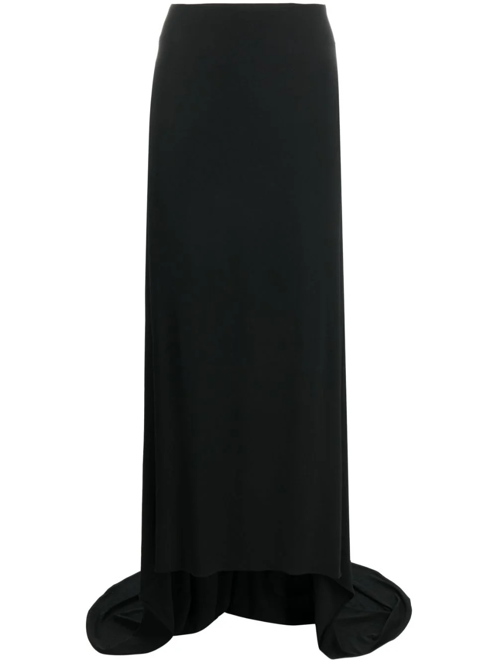 floor-length asymmetric draped skirt Magda Butrym presents a dramatic silhouette in the design of this skirt. Sitting at a mid-rise waistband, the style elegantly falls to a floor-sweeping length creating a high-low hem. Highlights - Black - Mid-rise - Asymmetric design - Floor-length - High-low hem - Slip-on style Imported Composition Viscose 92%, Elastane 8% SIZE & FIT Model measurements Height 5 ft 10 in(1.79 m) Bust/Chest 33.07 in(84 cm) Hips 35.82 in(91 cm) Waist 24.01 in(61 cm) FittingInformation This maxi-length skirt is intended to be worn low on the hips Made from a midweight stretch fabric, this piece offers elasticity and flexibility when worn This piece fits true to size – take your usual size Washing instructions Hand Wash