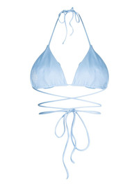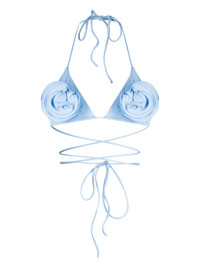 floral-applique bikini top Magda Butrym injects its signature flair into this bikini. The design is cut to a halter-neck silhouette and complemented by a floral applique at the chest - a recurrent identifying feature of the label. Highlights - Light blue - Stretch-design - Floral applique - Triangle cup - Halterneck tie fastening - Strap detailing Made in Italy Composition Polyamide 91%, Elastane 9% Washing instructions Machine Wash
