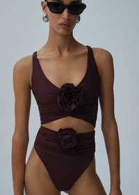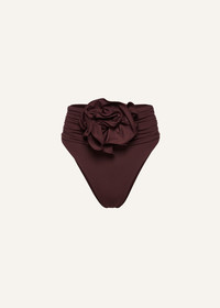 High-waisted floral appliqué swim bottom in brown
