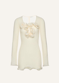 Magda Butrym’s beachwear offering includes a signature long-sleeve mini dress made from crepe fabric, with floral ruffle detailing at the chest to create a deep neckline. Details ID: 305525 Shell 59% Lyocell 40% Polyester 1% Elastane. Sizing This piece fits true to size. We recommend you get your regular size. Model is 182 cm and is wearing a size 34.