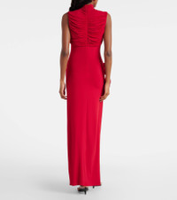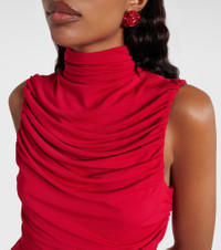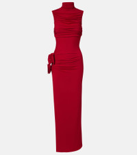 Floral appliques have become something of a Magda Butrym signature, appearing artfully on the brand's most coveted designs. This gown boasts tonal flower details on the waist and gentle draping on the sleeveless bodice. Product Details - Material: 81% viscose, 15% silk, 4% elastane - Care instructions: dry clean - Made in Poland - Designer color name: Red - Item color: red - Collar: mockneck - Closure: concealed zipped back - Long vent - Item number: P01120832 Size & Fit - True to size - Fitted - Stretchy fabric - The model seen in the picture is 178cm-5'10" and wearing a size FR 36