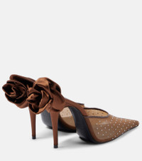 Floral-appliqué embellished mesh mules