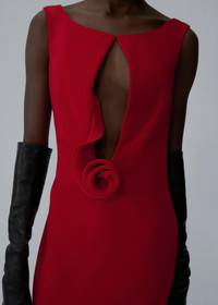 Midi dress featuring a keyhole neckline adorned with a floral applique. Crafted with a sleek silhouette, complete with discreet side pockets and a back zip closure. Details ID: 237925 Shell 96% Wool 4% Elastane. Lining 90% Silk 10% Elastane. Sizing This piece fits true to size. We recommend you get your regular size. Model is 177 cm and is wearing a size 34.