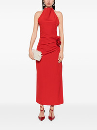 floral-applique midi dress Highlights - Bright red - Rear hook fastening - Side button fastening - Side slit - Open back Imported Composition Cupro 56%, Viscose 44% SIZE & FIT Model measurements Height 5 ft 10 in(1.78 m) Bust/Chest 33.46 in(85 cm) Hips 36.22 in(92 cm) Waist 23.22 in(59 cm) FittingInformation Designed for a slim fit that sits just away from the body offering a close yet comfortable fit Made from a midweight non-stretch fabric