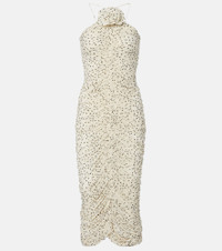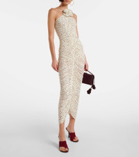Shaking up the industry with its biting modernity and artisanal excellence, Magda Butrym exists to empower. This ruched maxi dress is designed to fit and flatter the figure with a striking polka-dot print, halter neckline, and floral-applique. Product Details - Material: 92% cupro, 8% elastane - Care instructions: dry clean - Made in Poland - Designer color name: Cream Dots - Item color: beige - Item number: P01066053 Size & Fit - True to size - Close fit at the neck - Fitted - Stretchy fabric - Height of model is 175cm-69" and wears a size FR 36