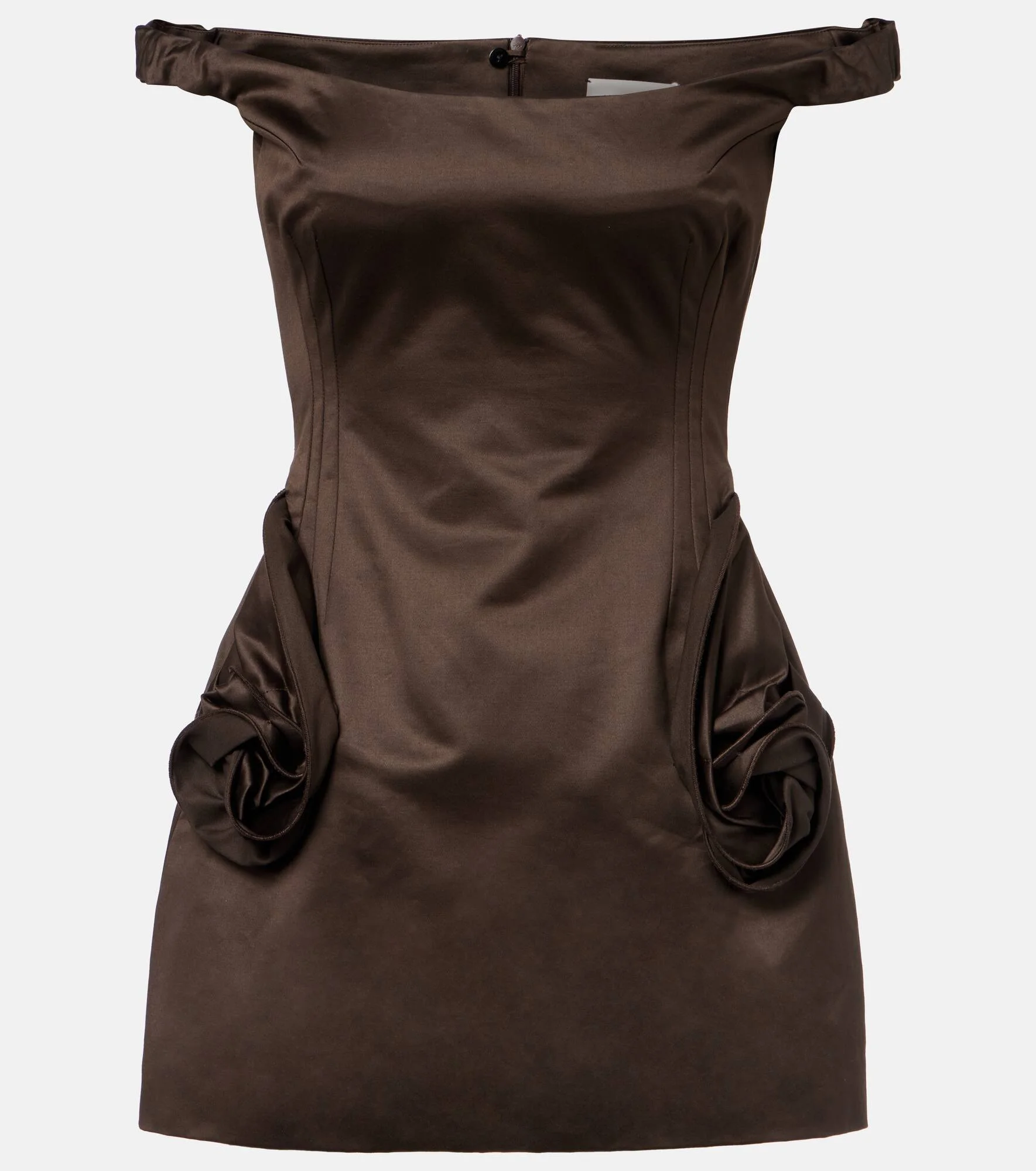 Floral-appliques have become something of a Magda Butrym signature, appearing artfully on the brand's most coveted designs, such as this bustier dress. Made from cotton satin, the design has artful floral-inspired folds and side slit pockets. Product Details - Material: 100% cotton - Care instructions: dry clean - Made in Poland - Designer color name: Brown - Item color: brown - Interlining: 100% silk - Pockets: side slit pockets - Closure: invisible zipper - Item number: P01066056 Size & Fit - True to size - Off-the-shoulder - Cinched waist - Non-stretchy fabric - The model seen in the picture is 178cm-5'10" and wearing a size FR 36