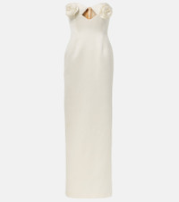 Floral-appliqué satin corset gown