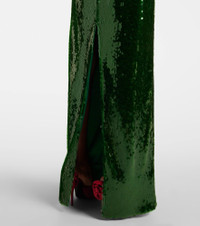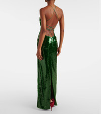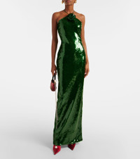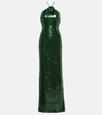 Floral-appliqué sequined halterneck gown