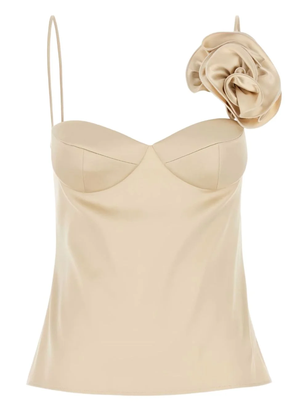 rose-applique satin top Highlights - Beige - Satin finish - Spaghetti straps - Rose applique - Sweetheart neckline - Zip fastening at back Imported Composition Silk 96%, Elastane 4% Washing instructions Read Manufacturer Guidelines