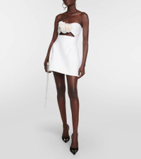 Magda Butrym's signature gathered rosettes speak to the label's theatrical approach to contemporary. Made of wool for a structured, form-fitting silhouette, this silk-lined bandeau minidress has a cutout bodice with label-iconic gathered appliqué. Product Details - Closure: zipper, hook fastening - Made in Poland - Lining: 100% silk, partially lined - Designer color name: Cream - Lining II: partially lined, 100% polyamide - Care instructions: dry clean - Material: 100% wool - Item number: P00832843 Size & Fit - True to size - Strapless - Internal boned corset for support - Cinched waist - Non-stretchy fabric - The model seen in the picture is 178cm-5'10" and wearing a size FR 36