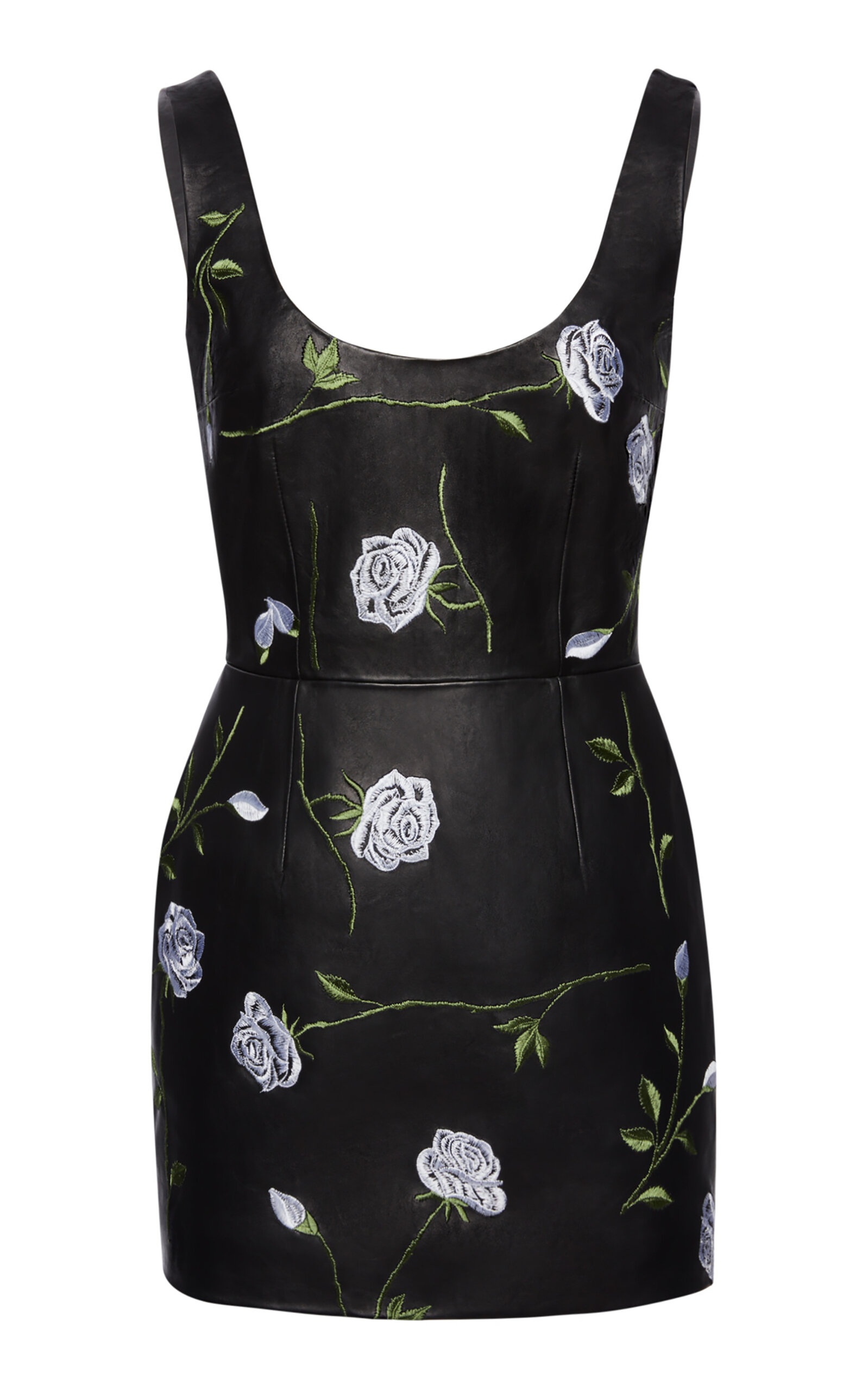Unabashedly feminine and sexy in equal measure, the Polish designer’s party pieces sit in a league of their own—and continue to evolve in her new collection. Highlights include new off-shoulder necklines and the return of her rose appliqués, now on separates, rendered in crochet and denim. Crafted from smooth leather, this mini dress has a snug, figure-accentuating silhouette detailed with floral embroidery all over. Style yours with white pumps to match the flowers. PRODUCT DETAILS - Resort '24 - Zip fastening - Composition: Shell: 100% Sheep Leather - Dry clean only - Made in Poland SIZE & FIT - Designed for a slim fit