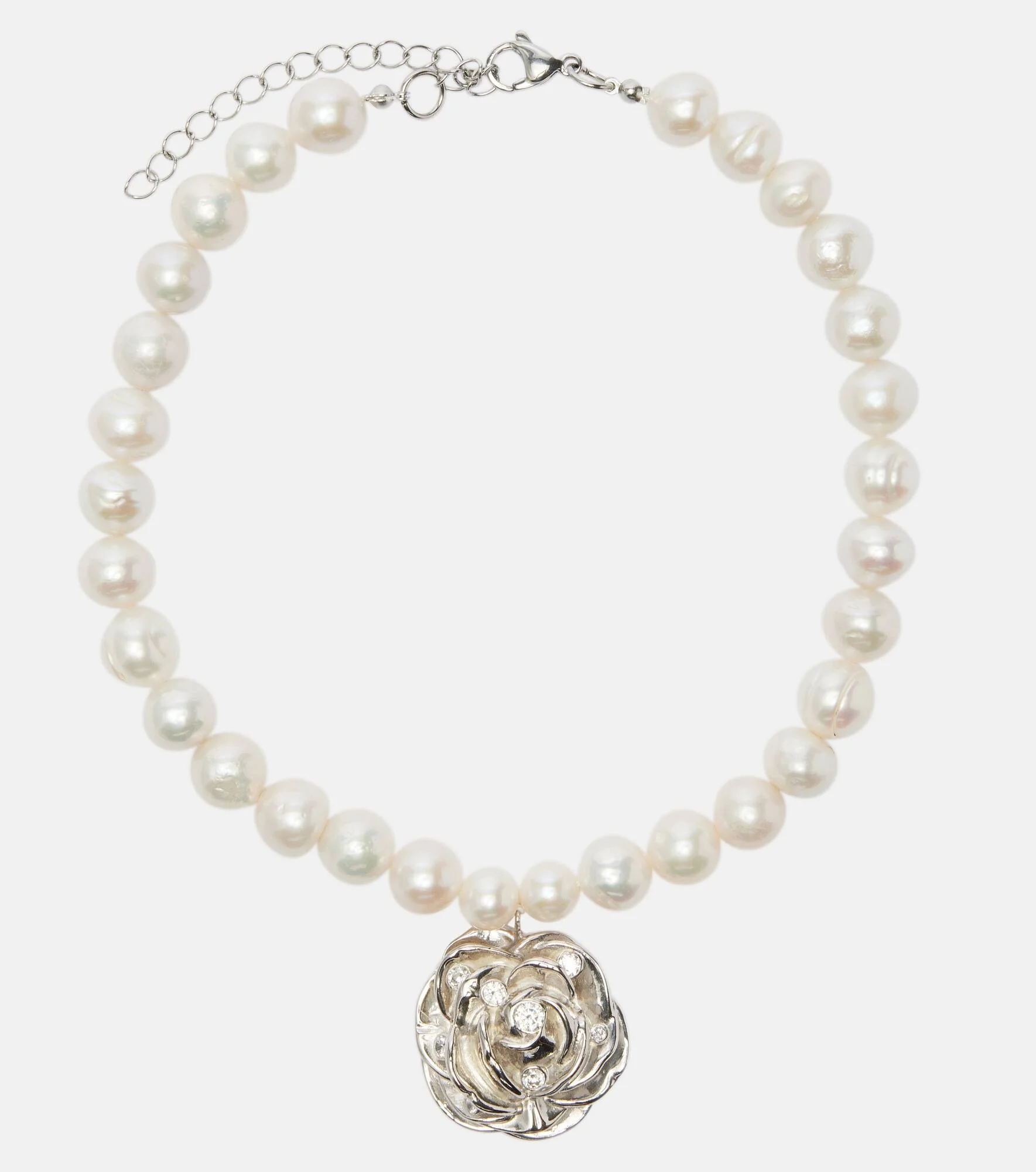 Product Details - Material: brass, faux pearls - Made in Poland - Item color: silver - Designer color name: Rhodium Silver - Closure: lobster-clasp fastening - Includes: presentation box, dust bag - Item number: P01021796 Size & Fit - Adjustable length - Width 1cm-0.5" - Pendant length 3cm-1" - Pendant width 2,8cm-1" - Min. length 34cm-13.5" - Max. length 40cm-15.5"
