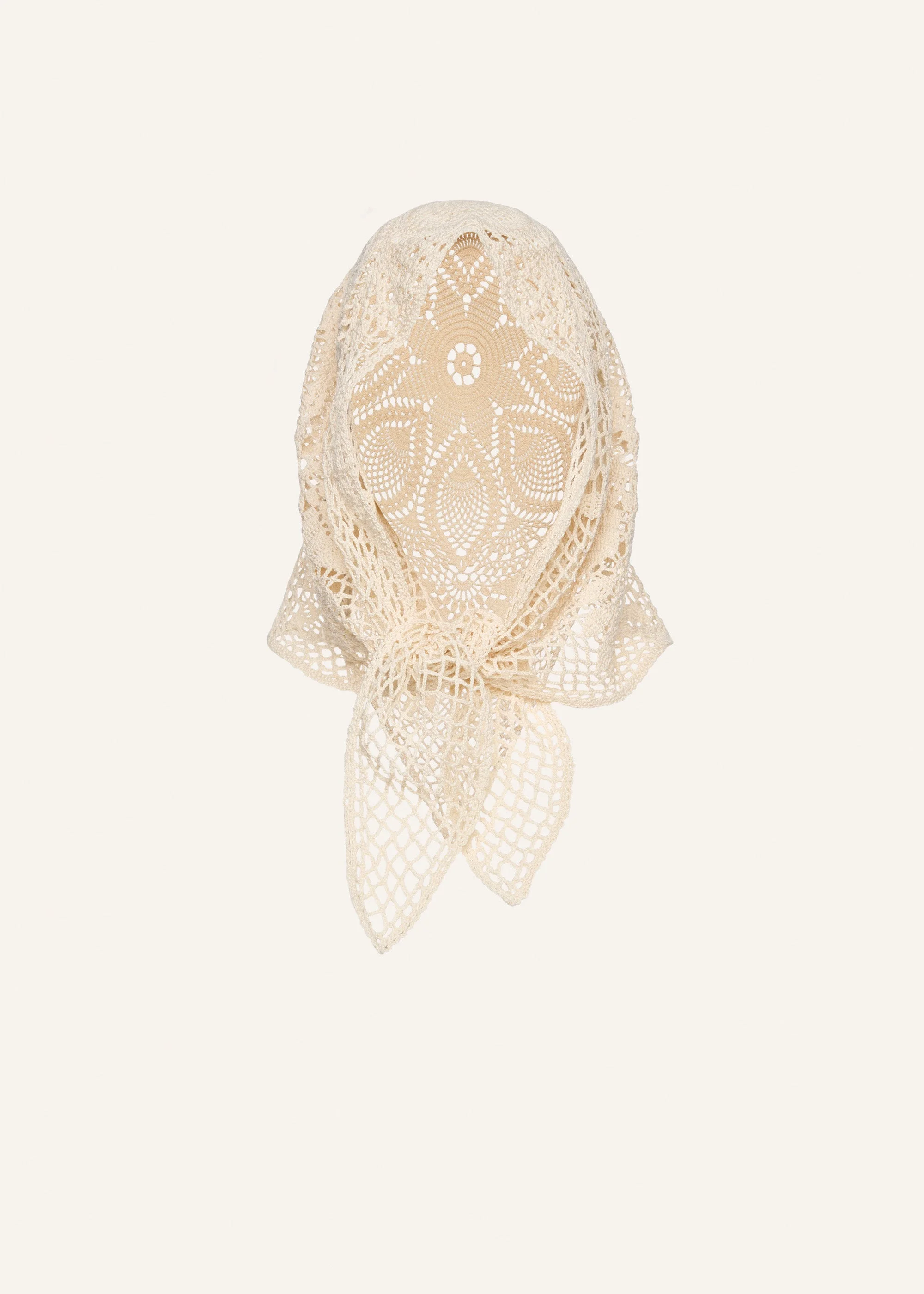 This beautiful crochet scarf in cream showcases intricate craftsmanship with an openwork floral pattern. Its triangular shape and lightweight design make it an accessory that can be worn as a headscarf, around the neck, or draped elegantly. Perfect for adding a soft touch to your outfit. Details ID: 399725 Shell 100% Cotton Sizing Approximate measurements: 63 cm x 68 cm