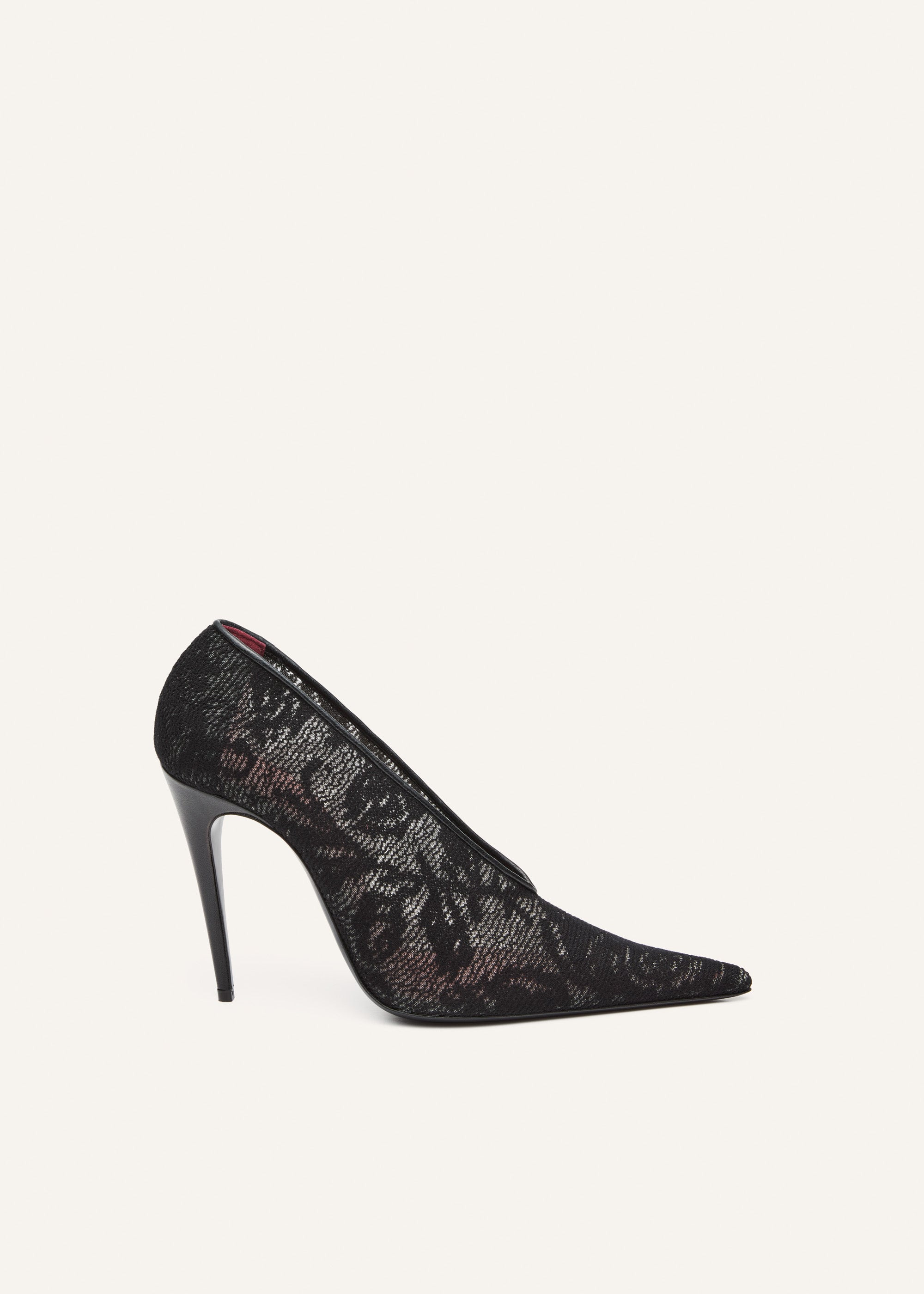 Floral knit pointed pumps in black