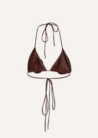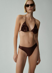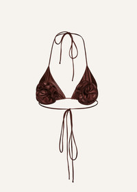 A classic triangle top with 3D floral embellishment on each cup, creating a signature Magda Butrym look. Extra long straps create a criss cross at the waist, with non-padded adjustable triangle cups at the bust. Made with Italian fabric. Details ID: 601724 SHELL 79% POLYAMIDE 21% ELASTANE. Sizing This piece fits true to size. We recommend you get your regular size. Model is 179 cm and is wearing a size 34.