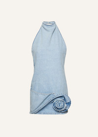 A denim mini dress with a halter neckline and a low back, detailed with a floral applique at the hip. Details ID: 204525 Shell 100% Cotton. Sizing This piece fits true to size. We recommend you get your regular size. Model is 178 cm and is wearing a size 34.