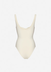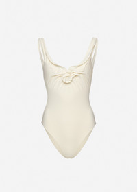 One-piece swimsuit with a softly draped neckline accentuated by a front floral ruching. The sculpting silhouette flatters the figure, while the scoop back adds a sensual finish. Details ID: 630426 Shell 75% Polyamide 25% Elastane Sizing This piece has a regular fit. Model is wearing a size 34.