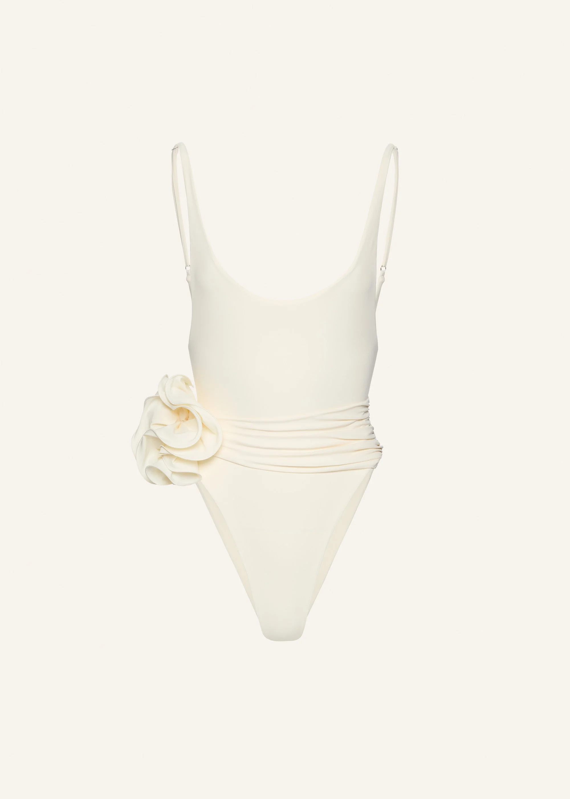 Flower scoop neck swimsuit in cream