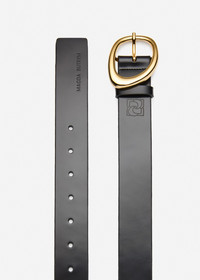 The fluid curves of the buckle lend a modern, architectural touch to the minimalist silhouette. Finished with an embossed Magda Butrym monogram. Details ID: 404426 Shell 100% Cow Leather. Sizing Approximate measurements: 72 cm to 90 cm length, 3,5 cm width.
