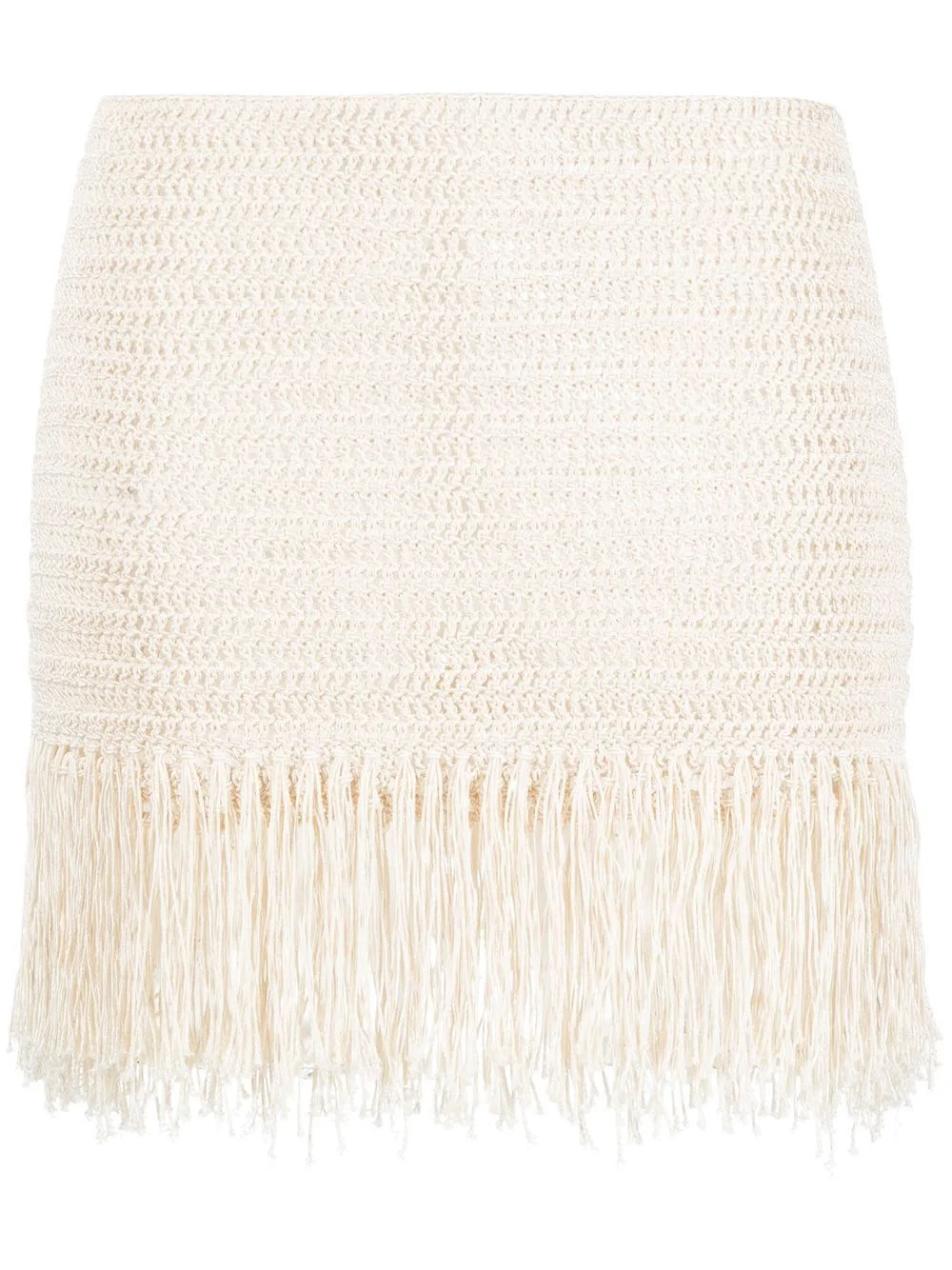 fringe-detail mini skirt fringe-detail mini skirt from MAGDA BUTRYM featuring cream white, cotton blend, open knit, fringe detailing and rear zip fastening. Imported Composition Polyester 100%, Cotton 75%, Viscose 25% Washing instructions Dry Clean Only