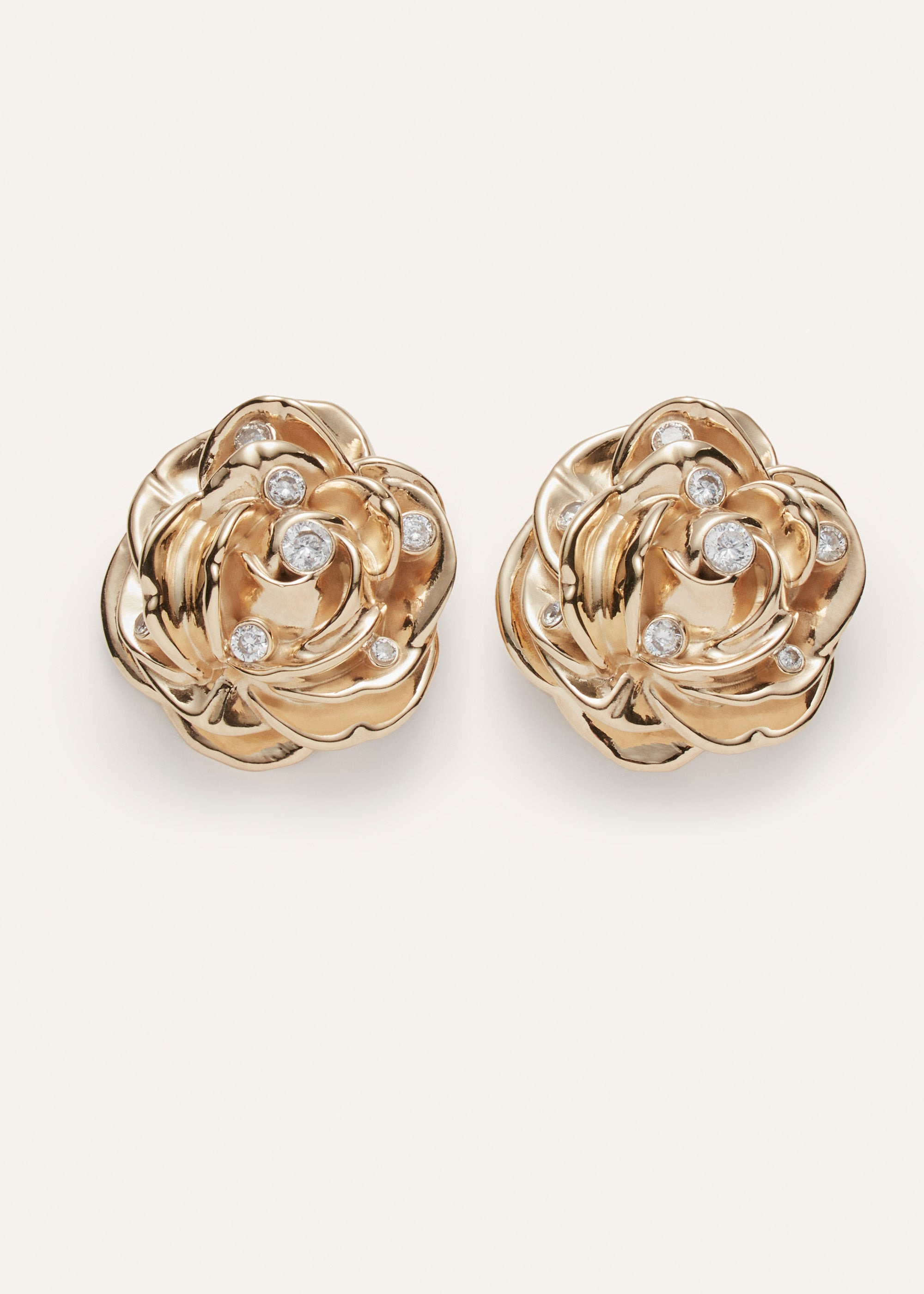 3D gold-plated floral earrings with crystal embellishments. Details ID: 713425 Hypoallergenic Goldplated Brass. Crystals. Sizing Approximate measurements: flower diameter is 3cm