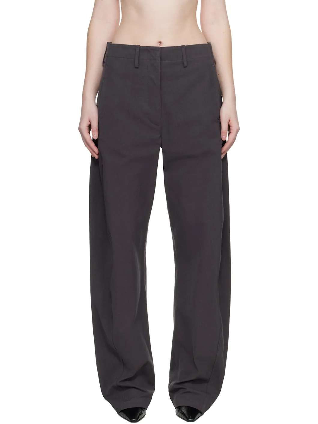 Cotton canvas trousers. · Low-rise · Loose-fit, straight-leg · Belt loops · Four-pocket styling · Zip fly · Curved outseams Supplier color: Grey Body: 100% cotton. Trim: 100% silk. Made in Poland 252533F087003