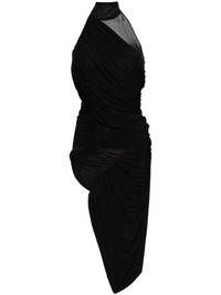 asymmetric halter dress Highlights - Black - Semi-sheer construction - Draped detailing - Open back Imported Composition Cupro 92%, Elastane 8% SIZE & FIT Model measurements Height 5 ft 10 in(1.77 m) Bust/Chest 31.49 in(80 cm) Hips 35.43 in(90 cm) Waist 25.19 in(64 cm) FittingInformation Designed for a close fit throughout Made from a midweight stretch fabric, this piece offers elasticity and flexibility when worn