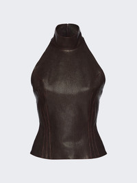 Leather Halterneck Top Brown