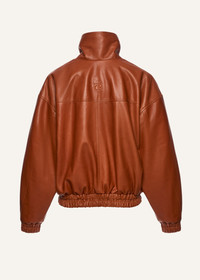 A cropped bomber jacket made from supple leather, with an exaggerated high-neck collar. Features an elasticized hem and cuffs, front welt pockets, and a concealed zipper closure with snap placket for a polished finish. Details ID: 246925 Shell 100% Sheep Leather. Lining 100% Viscose. Sizing This piece fits true to size. We recommend you get your regular size. Model is 177 cm and is wearing a size 34.