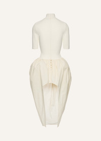 High-neck puff skirt midi dress in cream