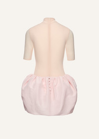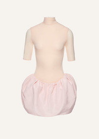 A dramatic mini dress featuring a sculpted bubble skirt and a sleek, form-fitting bodice. The upper body has a high turtleneck and elbow-length sleeves. The skirt is crafted from silk for a voluminous effect. Designed with an invisible back zip and functional buttons at the skirt, this piece is fully lined and finished with an internal bodysuit for structure and support. Details ID: 229925 Shell [1] 92% Cupro 8% Elastane [2] 100% Silk Sizing This piece fits true to size. We recommend you get your regular size. Model is 177 cm and is wearing a size 34.