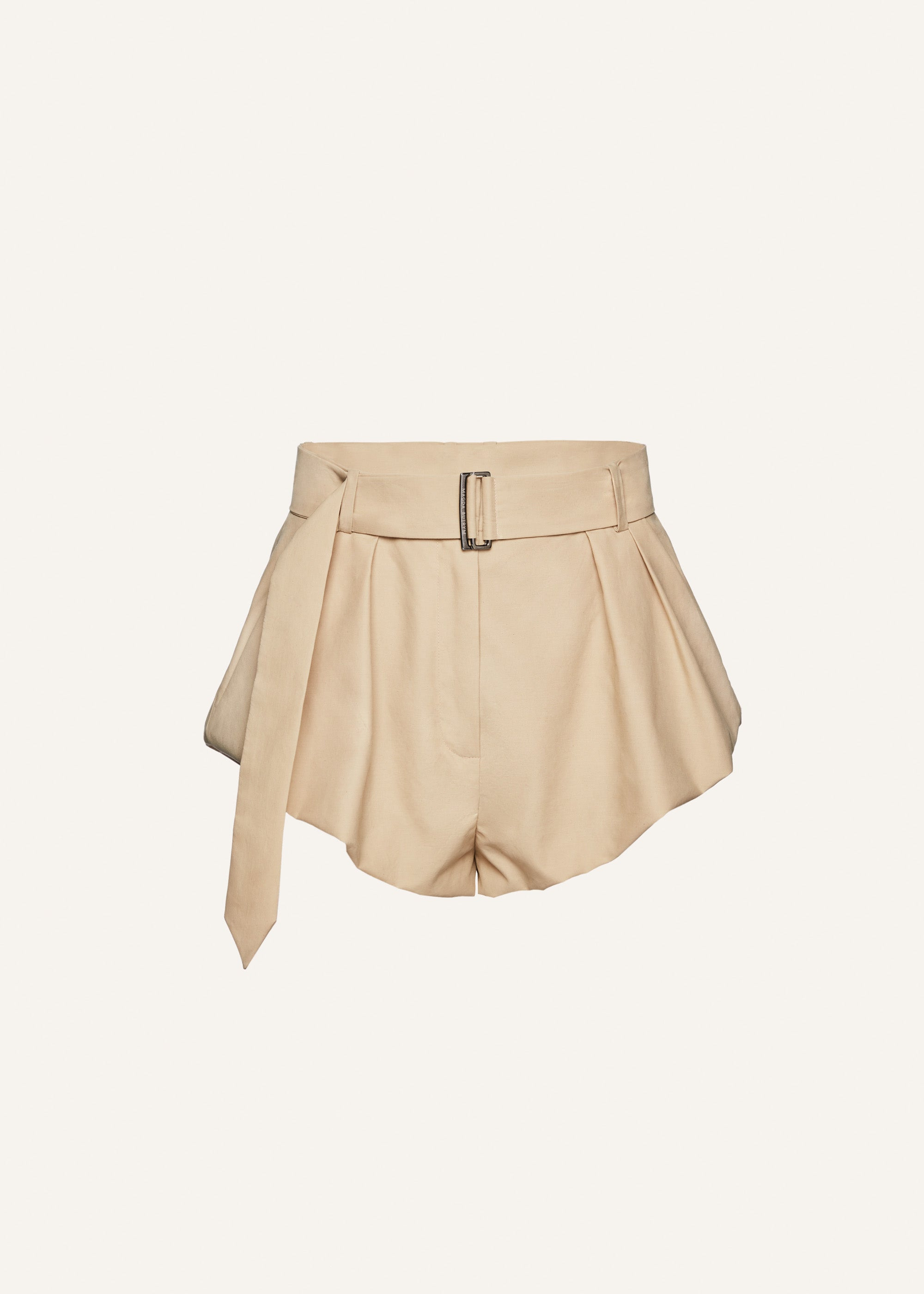 High-waisted mini shorts crafted from wool with a flared leg and fabric belt, offering warmth and style for cooler days. Details ID: 255425 Shell 71% Cotton 29% Polyamide Lining 100% Silk. Sizing This piece fits true to size. We recommend you get your regular size. Model is 180 cm and is wearing a size 34.