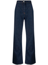 high-rise wide-leg jeans Taking on a classic noughties style, these Magda Butrym jeans are cut with a wide-leg silhouette. The pair sits high at the waist to accentuate its long length. Highlights - Navy blue - Cotton - High waist - Belt loops - Concealed fly and button fastening - Logo patch to the rear - Two rear patch pockets - Wide leg Imported Composition Cotton 100% SIZE & FIT Model measurements Height 5 ft 11 in(1.8 m) Bust/Chest 31.49 in(80 cm) Hips 36.61 in(93 cm) Waist 24.4 in(62 cm) Measurement FRONT RISE 12.79 in(32.5 cm) HIPS 33.85 in(86 cm) WAIST 26.77 in(68 cm) FittingInformation Designed with a flared hem, these jeans allow for a close fit at the waist with a slim fit over the leg and widening towards the hem Sturdy and hard-wearing, this denim piece offers no stretch This piece fits true to size – take your usual size