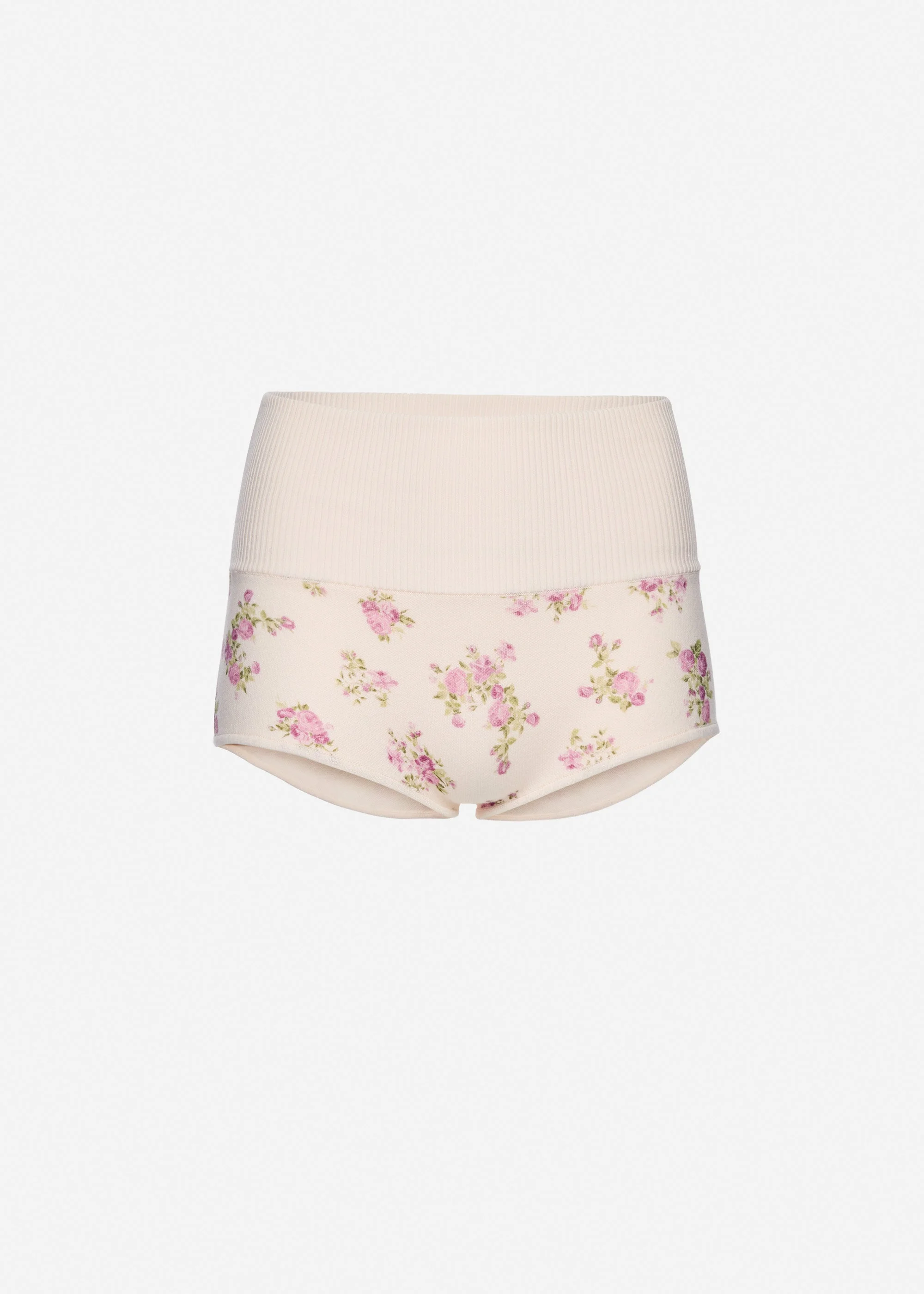 High-waisted cotton knit shorts in cream floral print