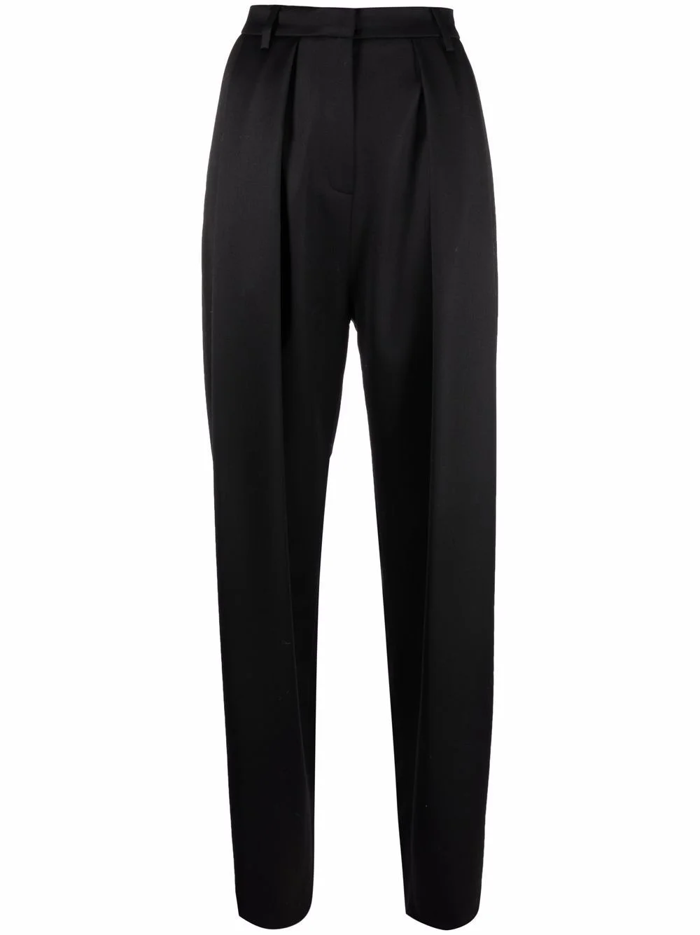 high-waisted oversize tapered trousers black wool-silk blend high-waisted oversize frame tapered leg front button and zip fastening slip pockets to the sides Imported Composition Lining: Silk 100% Outer: Wool 100% SIZE & FIT Model measurements Height 5 ft 9 in(1.76 m) Bust/Chest 33.07 in(84 cm) Hips 34.64 in(88 cm) Waist 25.59 in(65 cm) FittingInformation This piece fits true to size. We recommend you get your regular size Designed to be fitted at the waist and hips, loose over the leg Made with a mid-weight non-stretch fabric Washing instructions Dry Clean Only
