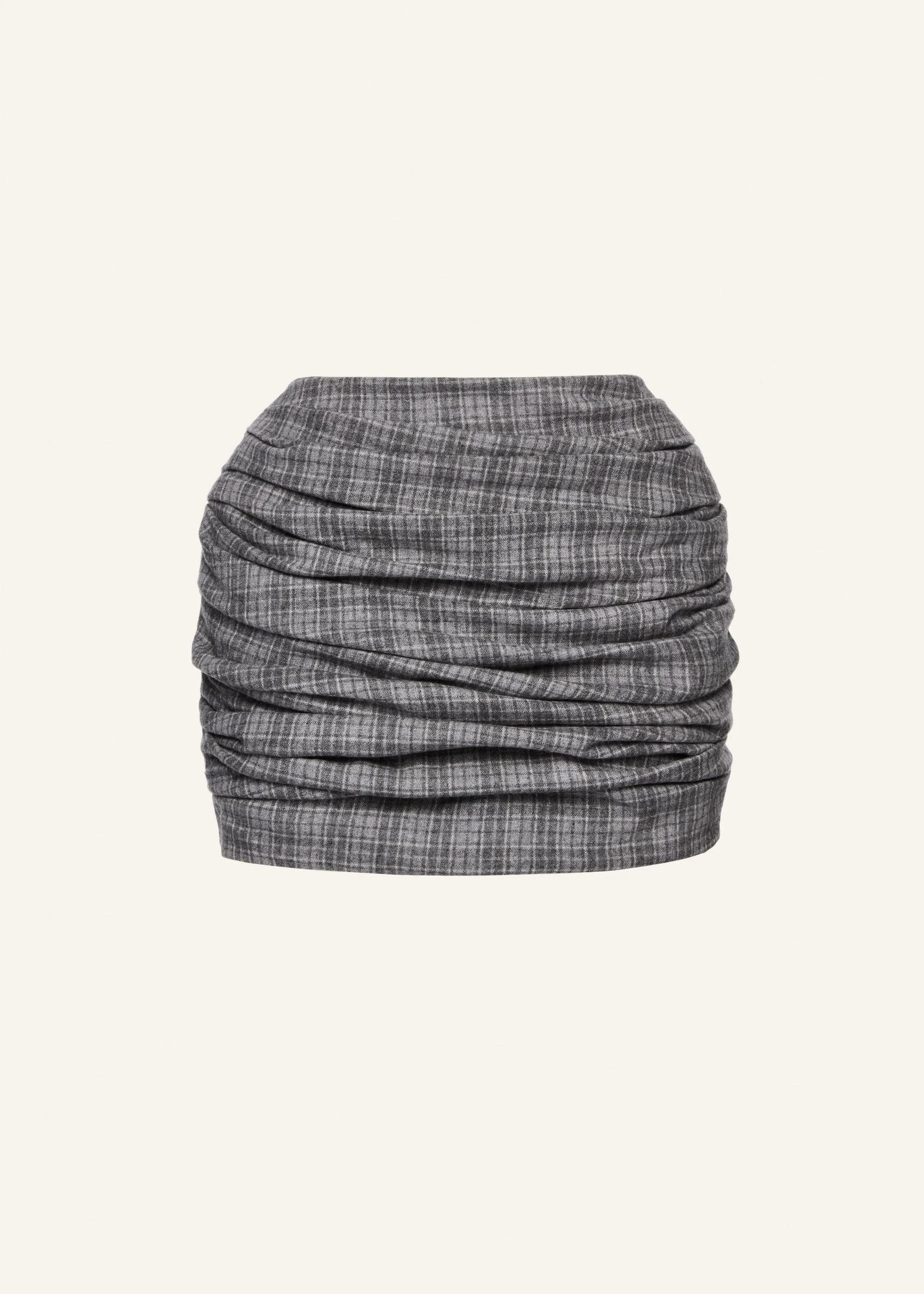 Hip pad draped skirt in grey check