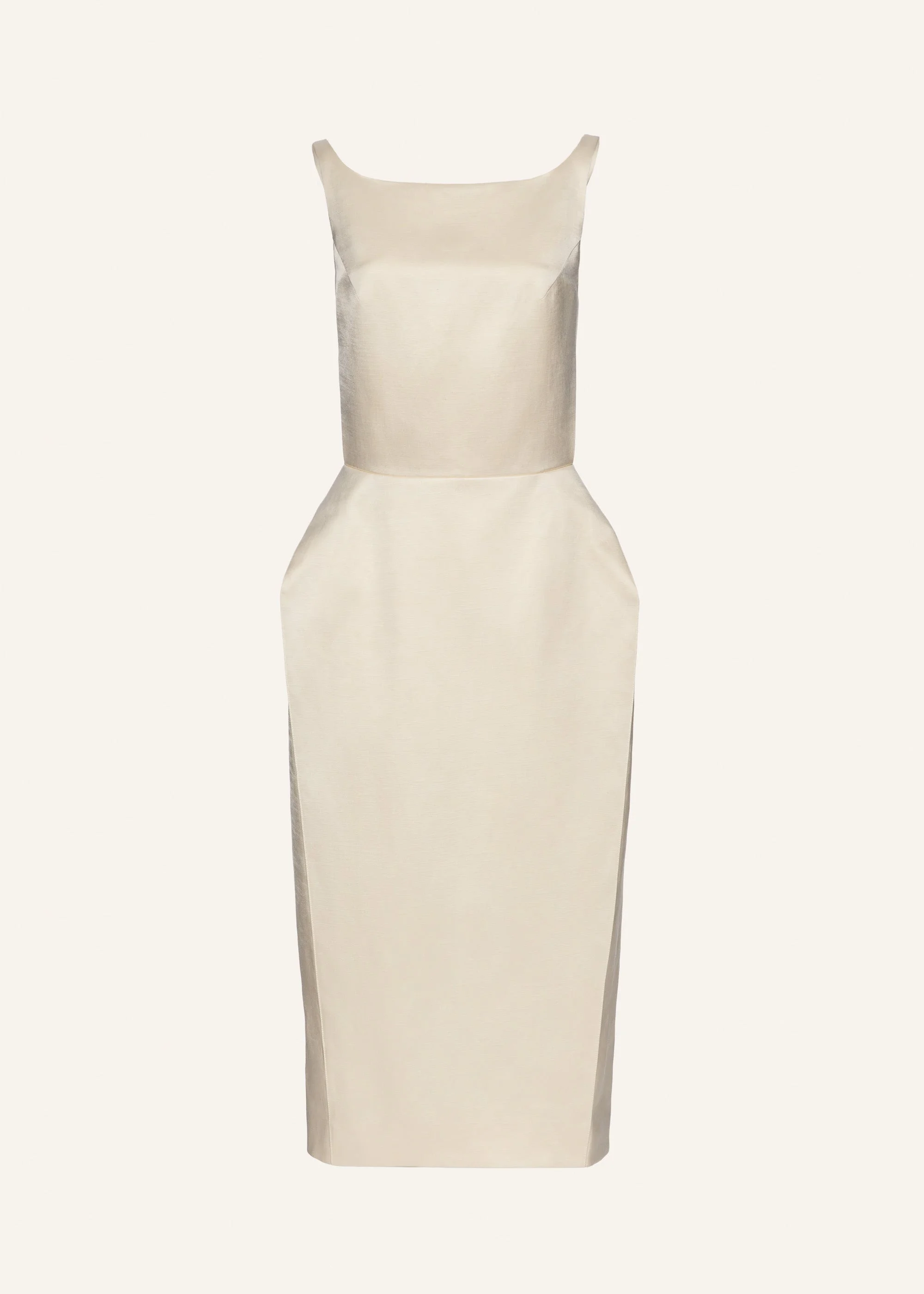 This ladylike midi dress is made from lightweight linen blend fabric and creates an hourglass shape by using hip pads and a fitted bodice, complemented by a rounded off-shoulder neckline. Details ID: 150725 Shell 66% Viscose 34% Linen. Lining 100% Silk Sizing This piece fits true to size. We recommend you get your regular size. Model is 180 cm and is wearing a size 34.