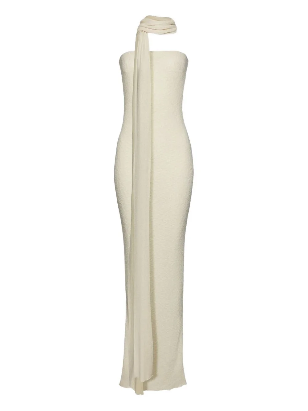 scarf-detail dress Highlights - Cream - Strapless neckline - Floor-length - Attached scarf - Knit texture Imported Composition Cotton-Linen Blend 100% Washing instructions Read Manufacturer Guidelines