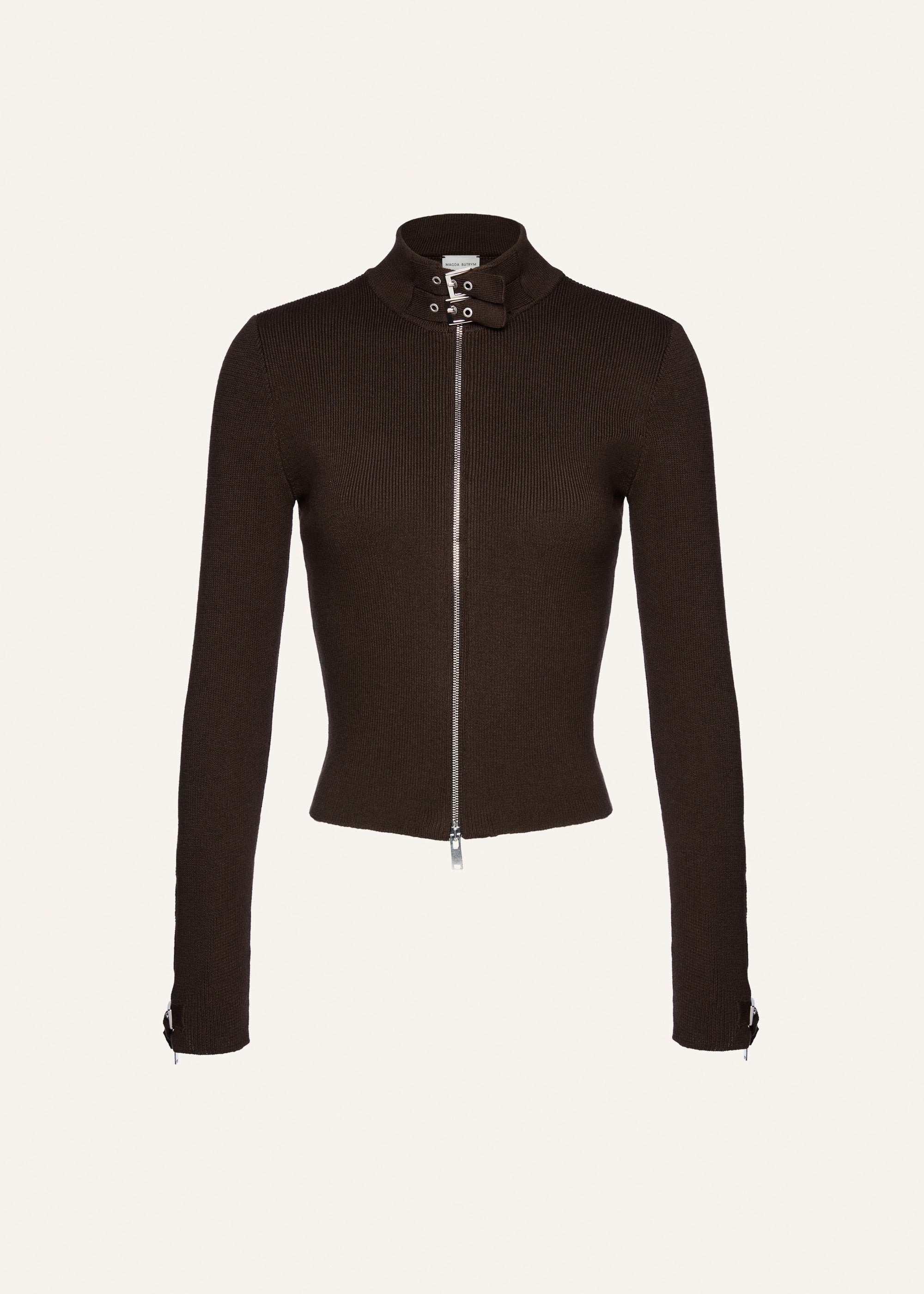 This cotton-cashmere blend knit sweater features a full zip front and double buckle detail at the collar, combining a classic style with unique, chic elements. Details ID: 315425 Shell 85% Cotton 15% Cashmere. Sizing This piece fits true to size. We recommend you get your regular size. Model is 180 cm and is wearing a size 34.